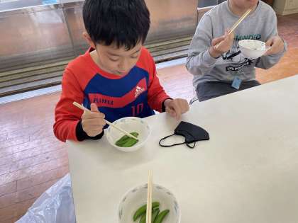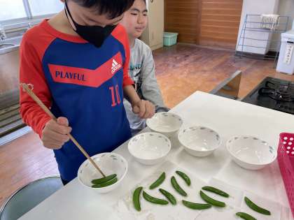 【4くみ】スナップエンドウ調理2