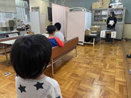 視力検査をしました。戸惑うことなく、スムーズに検査を受けることができました。保健室で休んでいる人もいたので、いつもより静かにすることも頑張れました!!