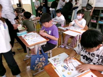 3年:授業参観「あいさつをしてめいしをこうかんしよう」