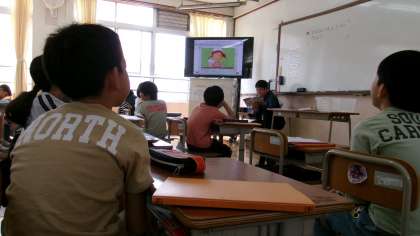 今日もALTが一緒です。映像を見ながら、何と言っているのか一生懸命聴き取ります。ひとつ手がかりになる単語があると、親しみをもって聞くことができます。