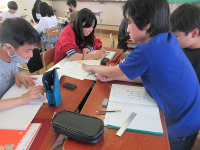 グループ4人で協力して、うかんむりやにくづきの部首がある漢字見つけをしました。どのグループも真剣に、すごい集中力でした!見つけた後には漢字の共通の意味を考え、部首にも意味があることに気づくことができました。