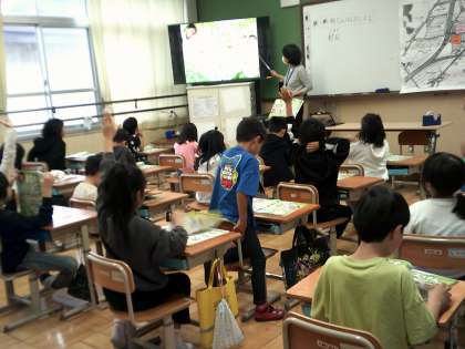 2年生の生活の学習では、学校たんけんを終え町たんけんの準備をしています。町にどんなものがあるかを発表し、町たんけんに胸を膨らませていました。