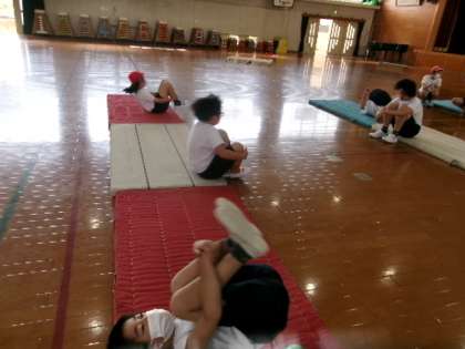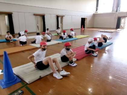 本日の「マット運動」も5.6年生合同で行いました。
