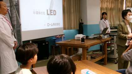 ロームの方々が講師をしてくださり、回路を作ってLEDに灯りをつける工作をしました。