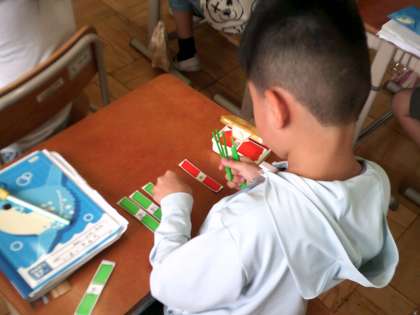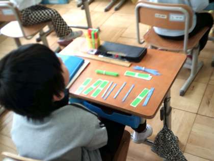 2年生の算数では本日からたし算のひっ算の学習が始まりました。数え棒を使って、答えを確認した後、筆算の仕方を学習しました。「かんたんや」とスラスラ問題を解いていく姿がたくさん見られました。