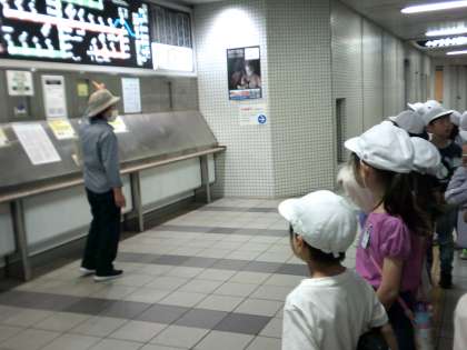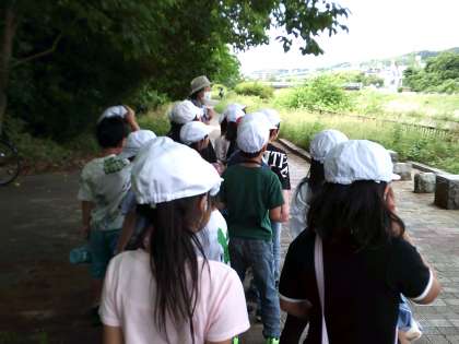 2年生は3回目の町たんけんに行きました。山科川沿いにたくさんの花や生き物がいることを見て歩きました。石田駅にも見学に行き、券売機や改札を見て遠足の時を思い出した様子でした。