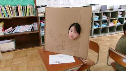 3年:図工「顔を出したらなんだかワクワク」