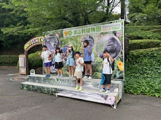 東山動物園に到着です。着いてすぐにグループで記念写真。