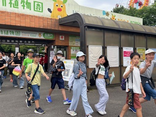 東山動物園を後にして、バスに向かっています。