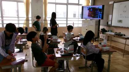 直列、並列のつなぎ方によって、プロペラがどんな飛び方をするかを調べました。つなぎ方を確認し、プロペラがうまく飛んだ時には思わず歓声があがりました。どうつなぐと、一番よく飛んだかな。