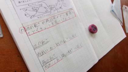 平行四辺形の2つの特徴をグループで話し合いました。自分が調べたことをノートの図を指し示しながら、「〜なので、〇〇だと思います。」と上手に言えるようになってきています。聞く人も「なるほど。」「いいと思います。」「私も同じで、〇〇です。」など返せる場面が増えています。