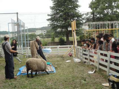 なぜ、毛刈りをするのかの説明を聞いて納得していました。