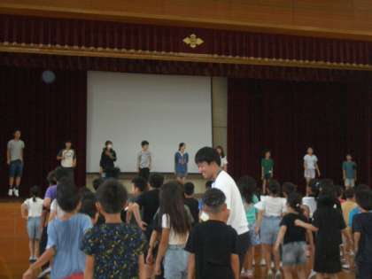 ハロースマイル委員会と全校のみんなでラジオ体操をしました。