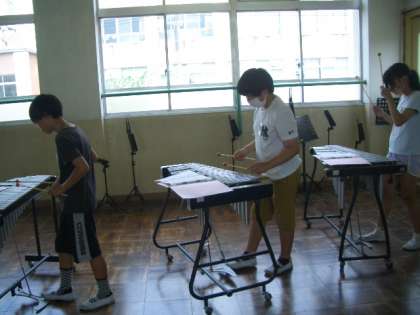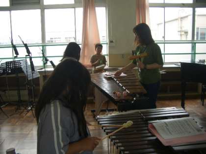 木琴、鉄琴、リコーダー、ピアノ、大太鼓、打楽器にわかれて演奏しました。