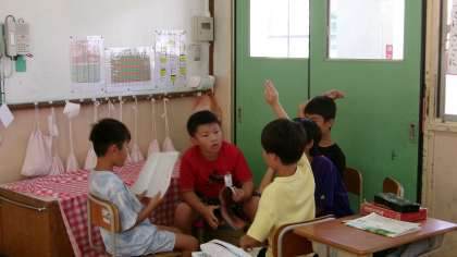 「鳥になったきょうりゅうの話」を読み、そこからクイズを作りました。〇×クイズやどっちでしょうクイズなども取り入れて、自分が読んだことを基に問題にしました。グループで問題を出し合いました。クイズにすることで、もっとしっかりお話が分かったというふりかえりがありました。クイズを作ることで、注意深く読むことができていました。
