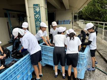 しっかりと道具についた海水を流し、片付けもばっちり!