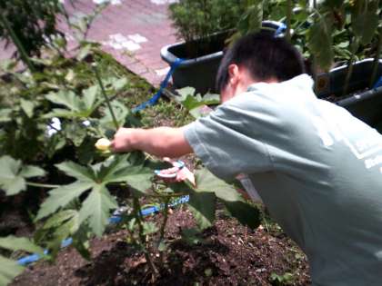 暑い毎日が続いています。野菜たちも暑さに負けずどんどん実をつけています。大きくなったおくらやナスに目を輝かせていました。夏休み前に、収穫できる野菜は収穫してしまいたいですね、