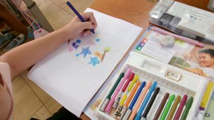 図工では、紙粘土を使って空き容器をペン立てや小物入れに変身させる学習のイメージスケッチを行いました。お家にありそうな身近な材料を思い浮かべ、どんな模様や柄にしようか考えていました。紙粘土に絵の具を混ぜて好きな色を作ります。作品を作るのが楽しみになりました。