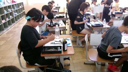 横画をいったんしっかり止めてから折れるところ、筆の角度を変えながらはねるところがポイントです。ポイントを意識しながら何度も練習しました。