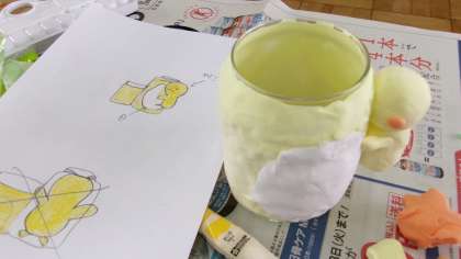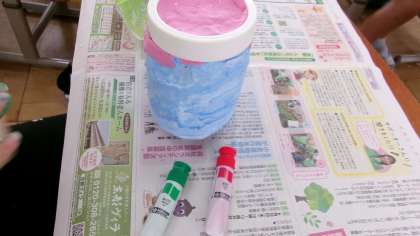 前回イメージした作りたいものにするために、お家から持ってきた空き容器に色をつけた粘土を薄くのばしながらはりつけていきました。もう飾りに入っている人もいれば、容器が大きく、土台になる粘土を一生懸命のばしている人もいました。お家に持って帰って使うのが楽しみな素敵な作品ができそうです♪