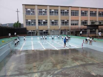6月8日(金),来週からのプール学習に向けてプール清掃を