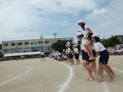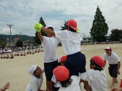 5年生と6年生が一緒になって騎馬を組んで競技をしました。