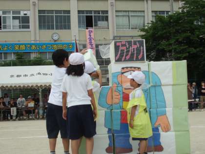 1年生と6年生のペア競技「怪物ランドはおおさわぎ」です。