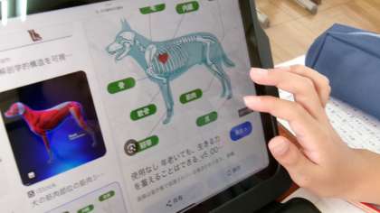 人の骨格と動物の骨格ではどのような違いがあるのかをタブレットを活用しながら調べています。調べたことをみんなで出し合い、生活の仕方に合った骨格のつくりをしていることが分かりました。