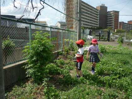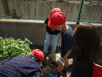1年生は昼休みに虫をさがしに行きました。生活科で虫を捕まえたおかげで、虫を捕まえるのがとても上手になっていました。