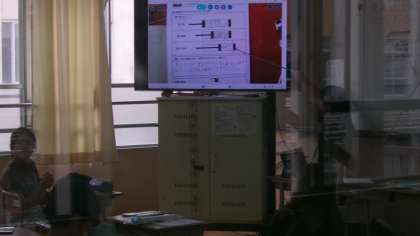 前回空気でっぽうをして気づいたことを振り返りながら、筒の中の空気はどのように動いたのか予想し、話し合っています。自分が考えたことを図に描き入れ、みんなに説明しています。