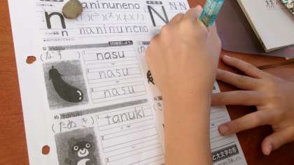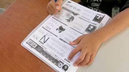物語文と並行して、ローマ字の学習も進めています。母音の「a・i・u・e・o」からスタートして、ハ行まできました。子音の「h」と母音を組み合わせてその行の文字を表せることの理解はまだまだ難しいようです。授業の後半では、これまでに学習した文字を組み合わせ、読む練習も行いました。「so」⇒「そ」・・・まだスラスラは出てきませんが、慣れていきましょう。タイピングも合わせて行っていきます。