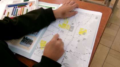 昔は田畑ばかりだった京都市も少しずつ市街地になっていくことを地図に色をぬりながら確認しました。