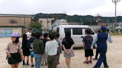 はじめは、交通ルールに関するお話を聞きました。自転車が走ってよい場所や交差点での止まり方などを確認し、自転車に本当に安全に乗れているのかと、今までの生活を振り返りながら聴くことができました。