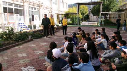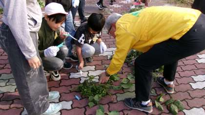 グループで協力してはさみでていねいにさやを外していきます。京都青果の方が「塩味がよくつくように、さやに少し穴をあける感じで切るといいことを教えてくださいました。集中してさやを外していくと、ざるに4杯ほどの枝豆が収穫できました。