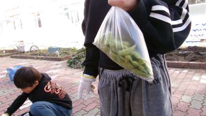 夏に畑に植えた枝豆「秘伝」の収穫をしました。