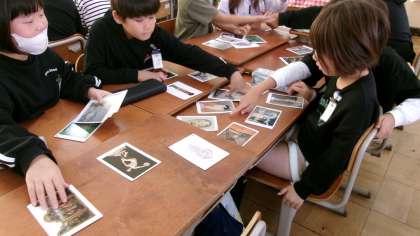 名画のカードをずらりと並べ、自分なりに仲間分けをしたり、見比べたりします。