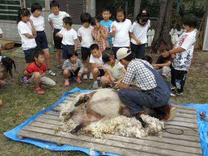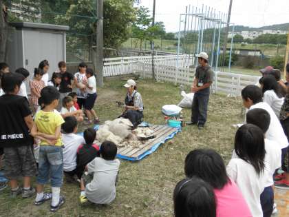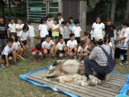 4年生は一番最後に見せてもらい,実際に毛がりの体験もさせてもらいました。