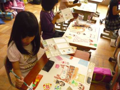 たくさんの思い出の中から一番楽しいことを伝えたいと思い思いに筆を動かしています。