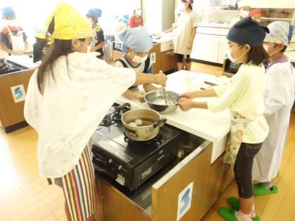 夏休み前,家庭科の最後の授業では,ゆで卵を作る