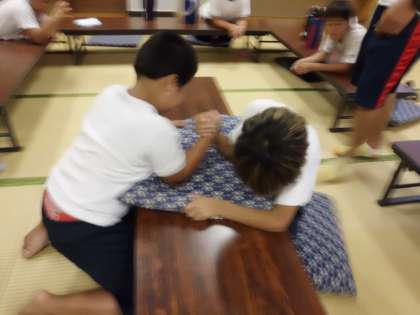 楽しく話をしているうちに、勝手にうで相撲の大会がおこなわれていました!