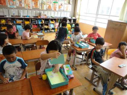お道具ばこやロッカーの整理をして、学習の準備をしました。