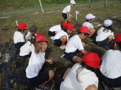 大きなおいもがたくさんできていて、ほりおこすのも大変でしたが、出てきたおいもを、とっても嬉しそうに手にとっていました。