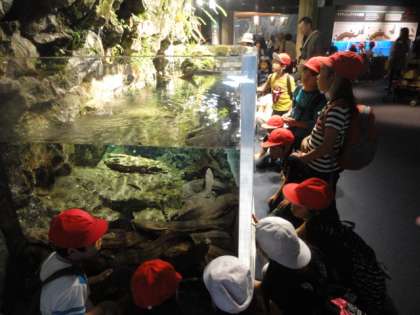 オオサンショウウオや、大水槽の生き物を見ているときには、目をキラキラさせていました。ペンギンやクラゲにも興味津津のようでした。