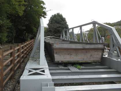 当時,船が通っていたインクラインを実際に歩きながら,こんなに急な坂を船が台車にのって移動していたんだとあらためてすごさを感じているようでした。