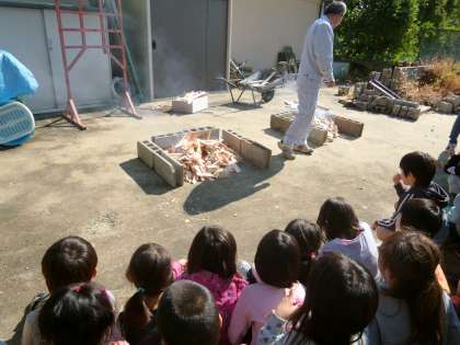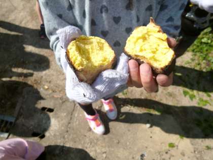 1日(木)に,収穫したさつまいもでやきいもパーティーをしました。火をつけるところから子どもたちは興味津々でドキドキ見つめていました。包みをあけると,見事にきれいなやきいもができあがりました。ほくほくしたおいしいやきいもにみんな大満足でした!管理用務員さんをはじめ,いろいろな方にお世話になり,やきいもパーティーは大成功に終わりました。