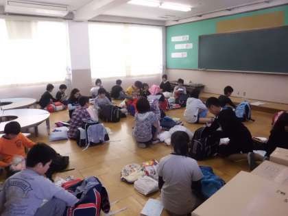学校で荷物チェックをしました。