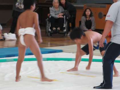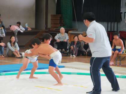 10月27日(土)に太秦小学校で全市部活動交流会(相撲の部)がおこなわれました。低学年(1年〜3年生)は,体育館のマット土俵で,力いっぱいがんばりました。