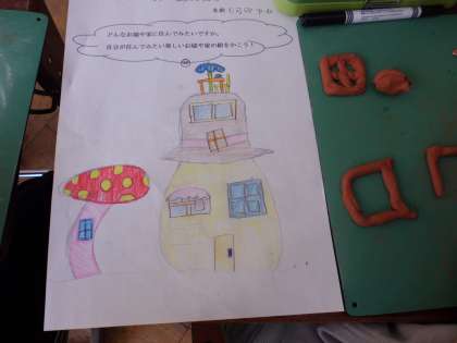 子どもたちは,自分が住みたい家をデザインし,ねん土をのばしたり丸めたりしながら,オリジナルのお城や家を作成しています。