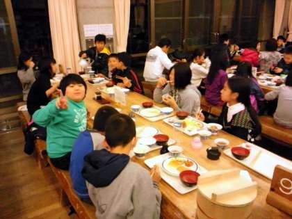 みんな元気いっぱいで最後の夜を迎えます。とにかくよく食べてくれます。大切なことです。この後はキャンプファイヤーが待っています。
