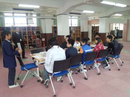 初めに全体で説明を聞き,途中各ブースの代表者が集まり会議を行い